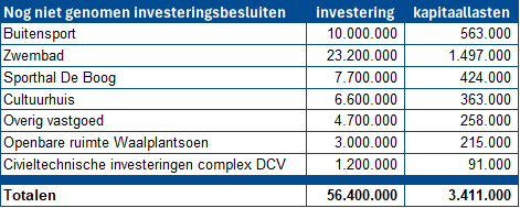 Daarnaast heeft ons college geprobeerd om een aantal grote opgaven scherper in beeld te brengen. Het gaat daarbij met name om de investeringen die nodig zijn om onze gemeente toekomstbestendig te maken.